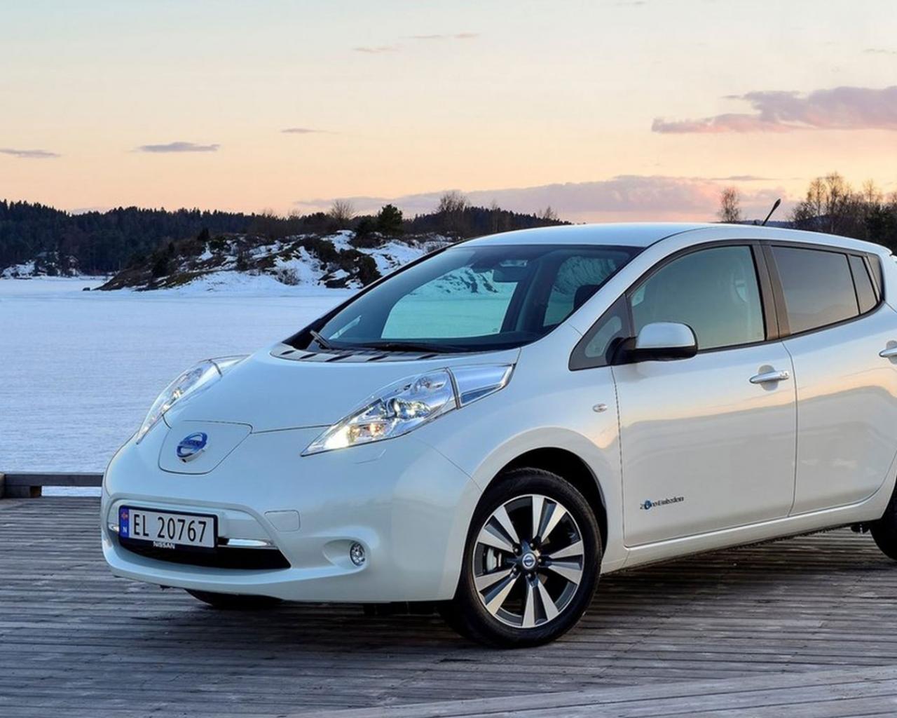 Обои Белый электромобиль Nissan Leaf модель 2016 года