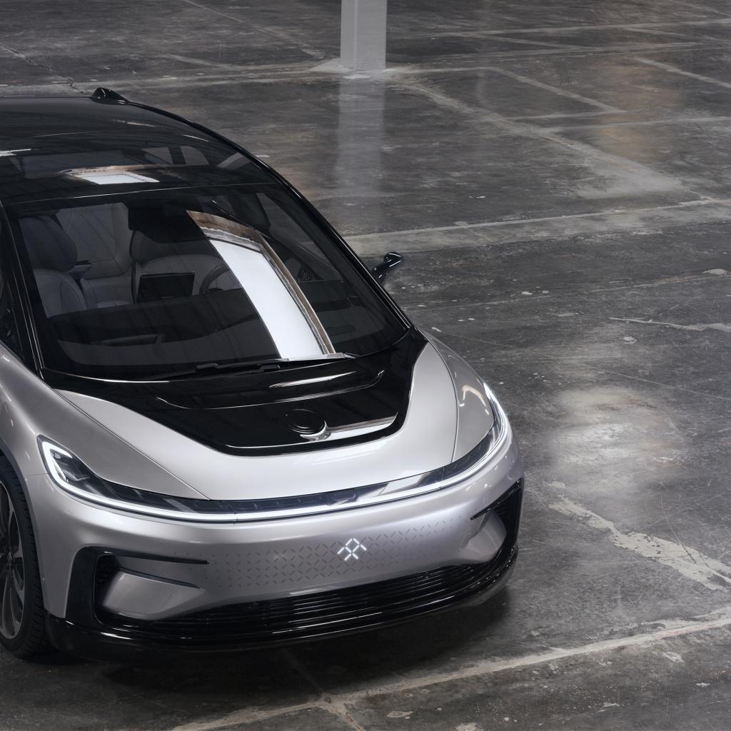 Обои Серебристый электрический автомобиль Faraday Future FF 91, 2017 года