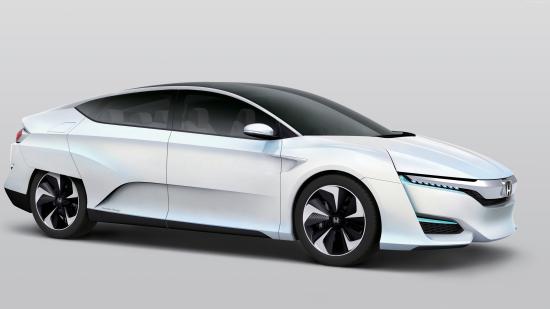 Обои Белый электромобиль Honda FCv на сером фоне