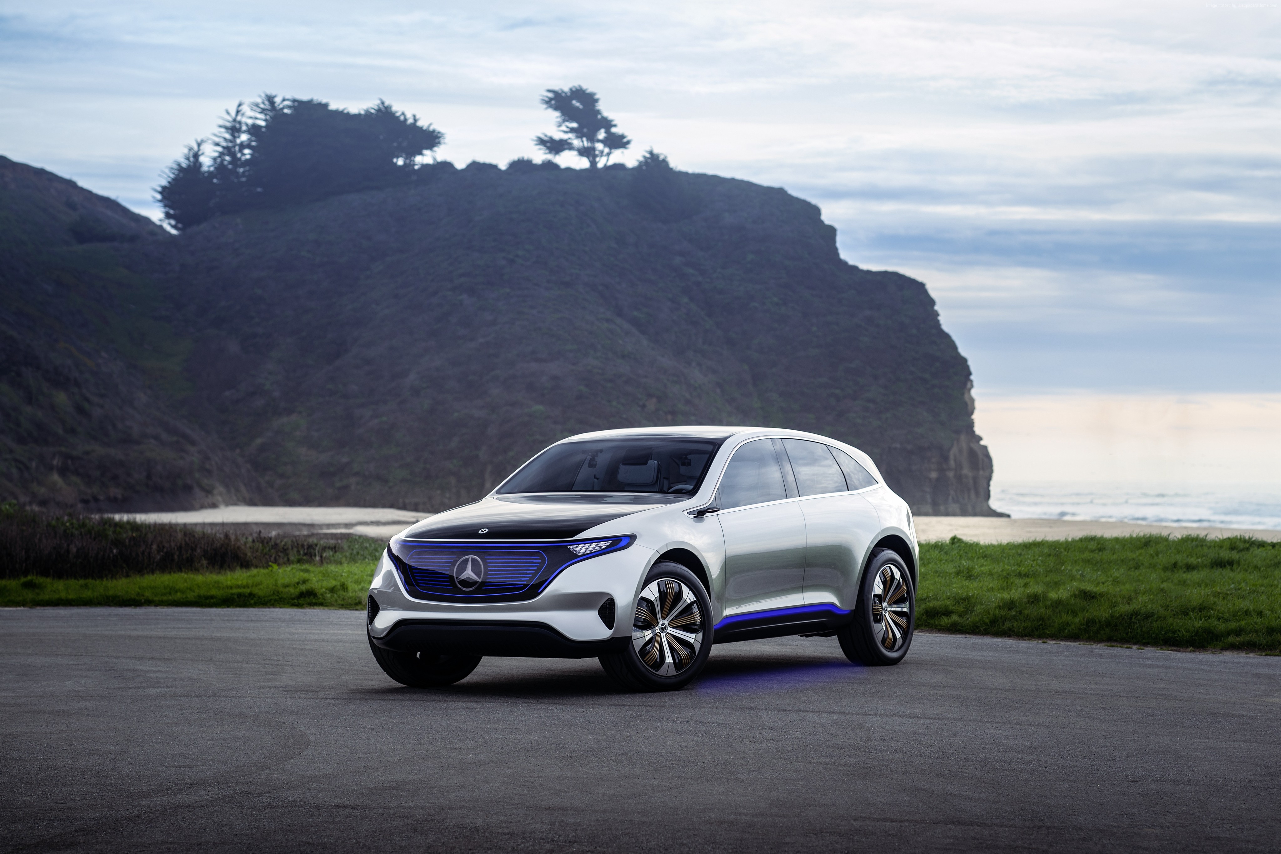 Обои Серебристый электромобиль Mercedes Generation EQ у океана