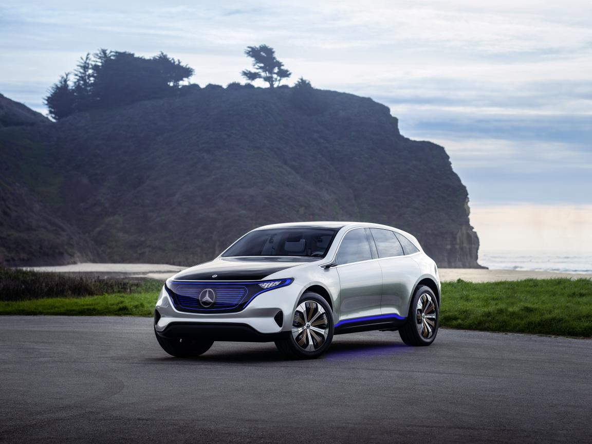 Обои Серебристый электромобиль Mercedes Generation EQ у океана