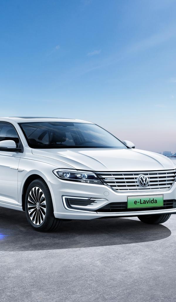 Обои Электромобиль Volkswagen E-Lavida 2019 года на заправке
