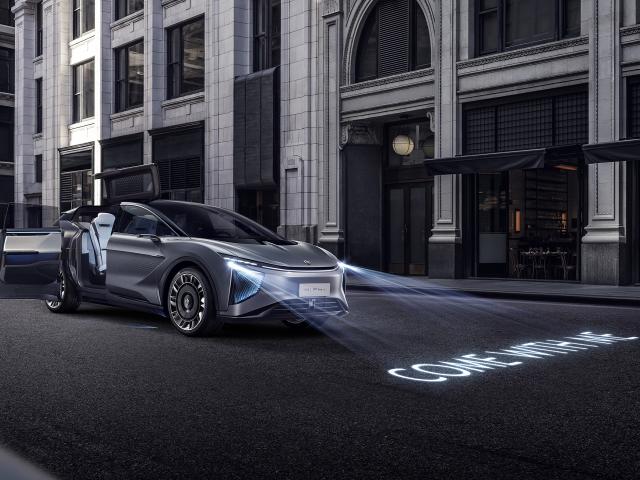 Обои Серебристый электрокроссовер HiPhi 1, 2020 года на улице города