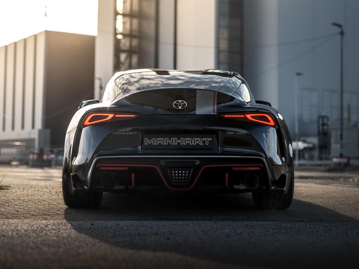 Обои Черный автомобиль Manhart Supra GR 450 2020 года у домов