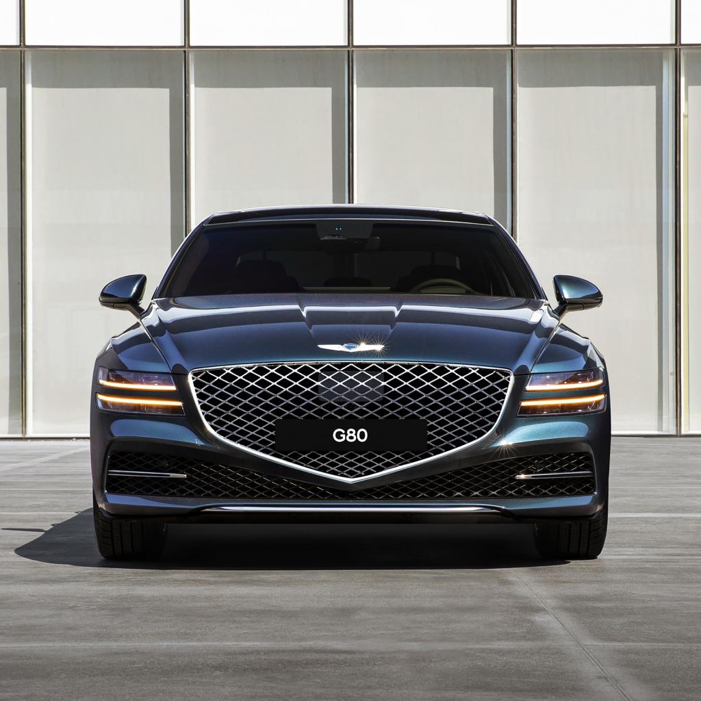 Обои Автомобиль Genesis G80 AWD 2020 года в лучах солнца