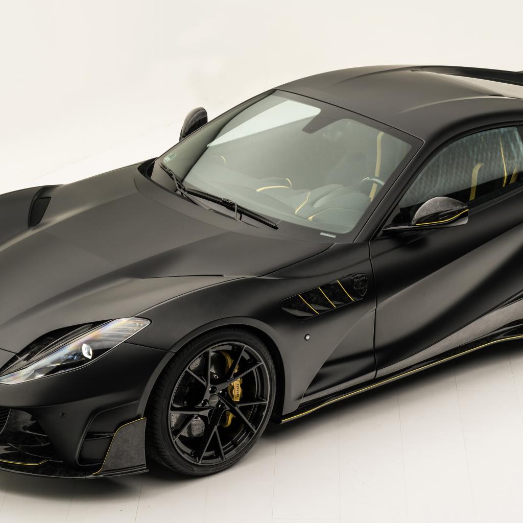 Обои Черный автомобиль Mansory Stallone на белом фоне