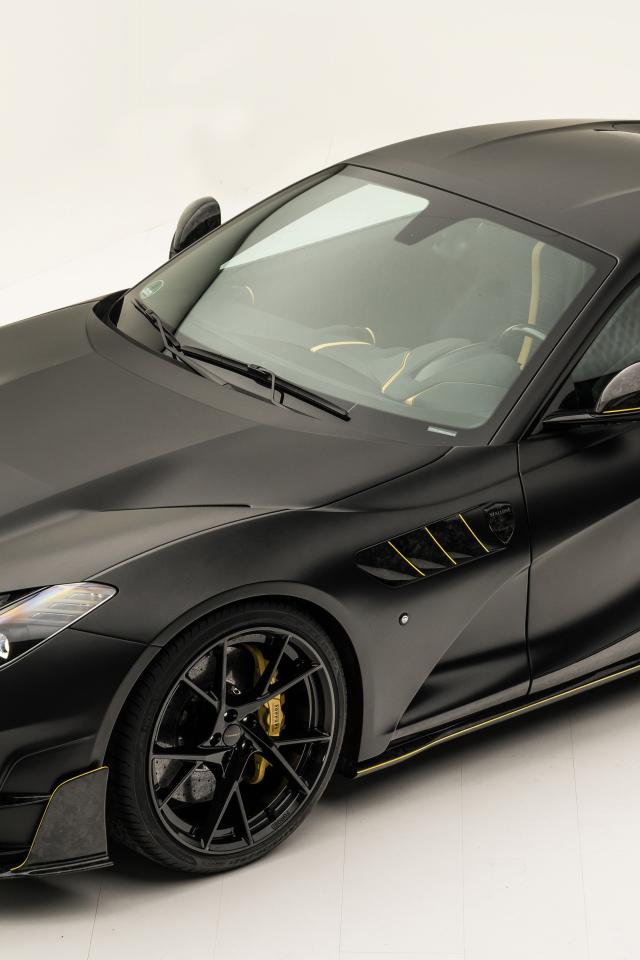 Обои Черный автомобиль Mansory Stallone на белом фоне