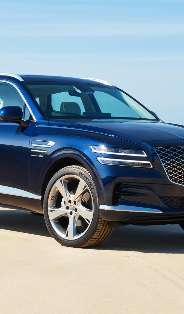 Обои Синий автомобиль Genesis GV80 2.5T 2020 года у океана