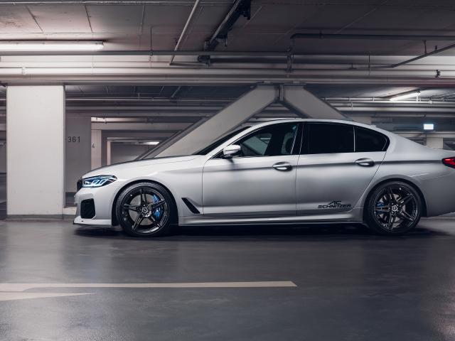 Обои Серебристый автомобиль Schnitzer ACS5 3.0d 2021 года вид сбоку