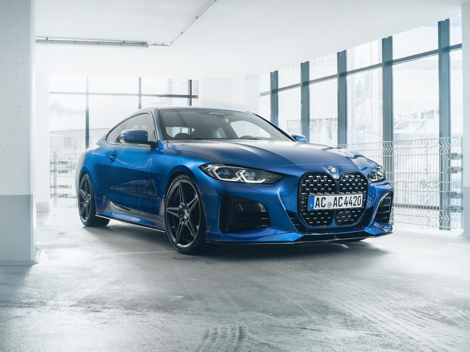 Обои Синий автомобиль Schnitzer ACS4 4.0i 2021 года на заправке
