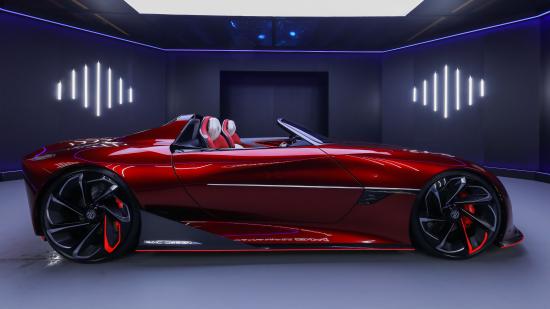 Обои Красный автомобиль MG Cyberster Concept 2021 года вид сбоку