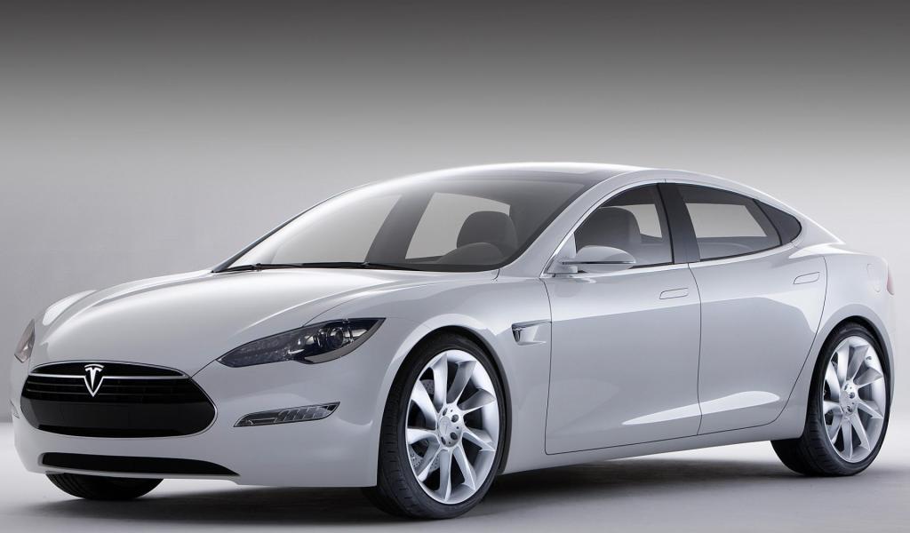 Обои Электромобиль Tesla на снегу