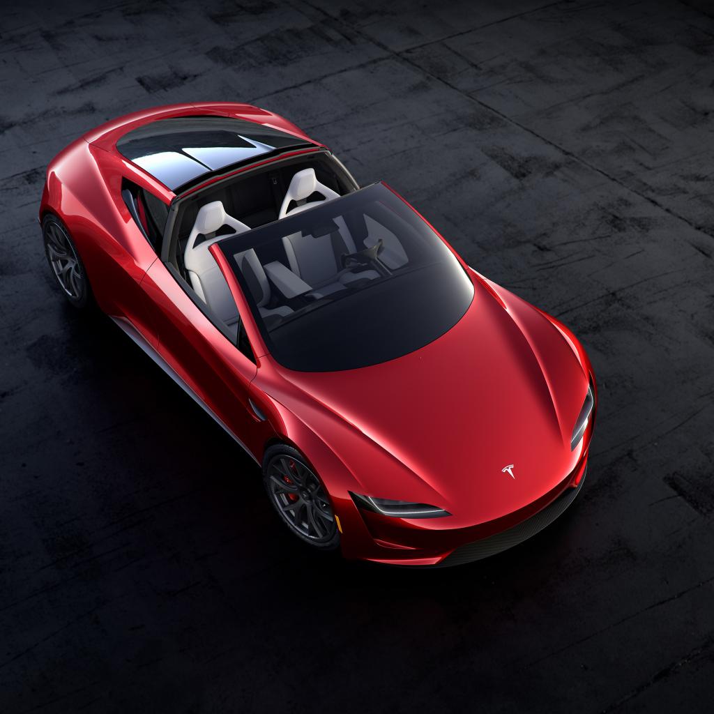 Обои Красный автомобиль Tesla Roadster, 2020 вид сверху