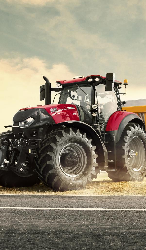 Обои Большой красный трактор с прицепом в поле