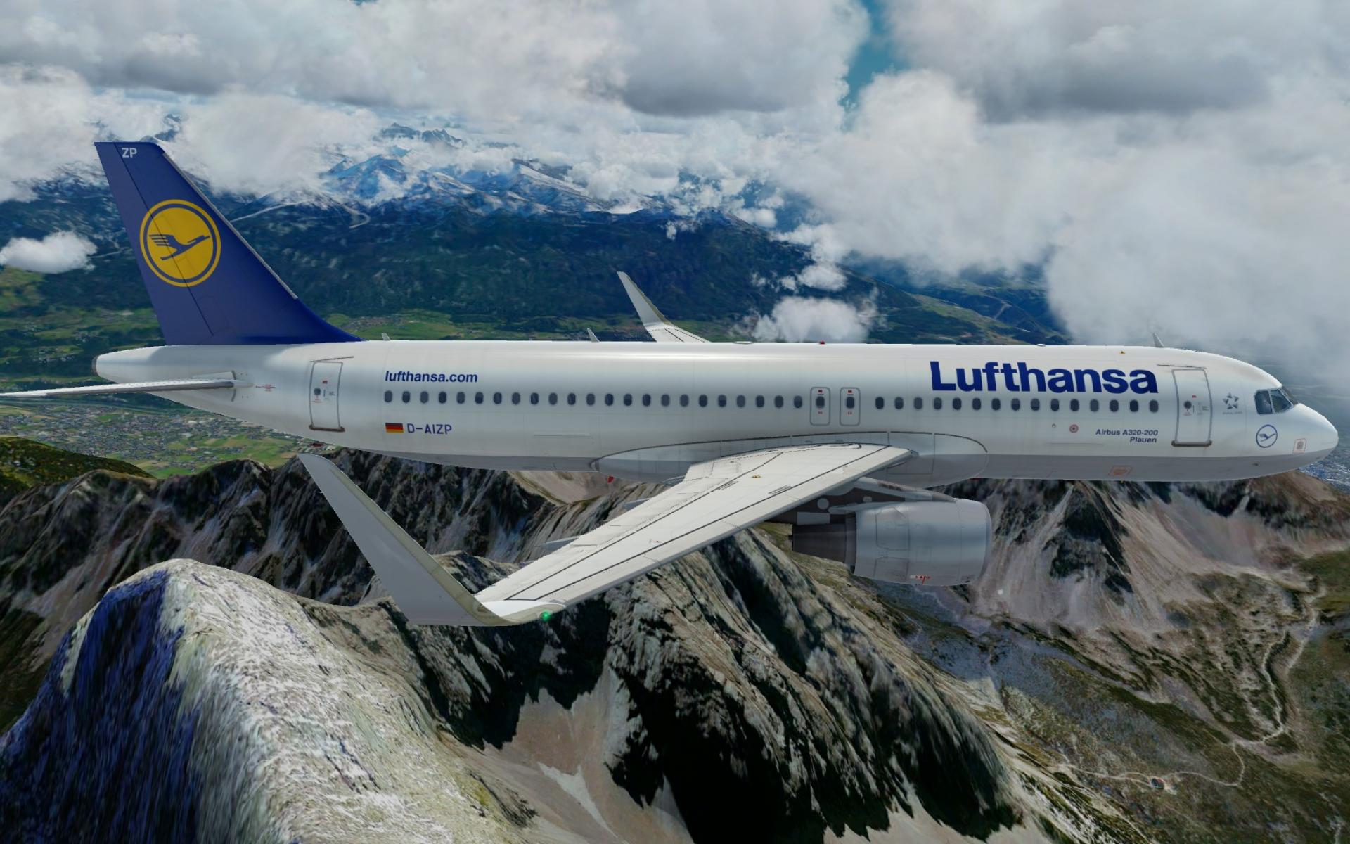 Обои Airbus A320 авиакомпании Lufthansa полет над горами
