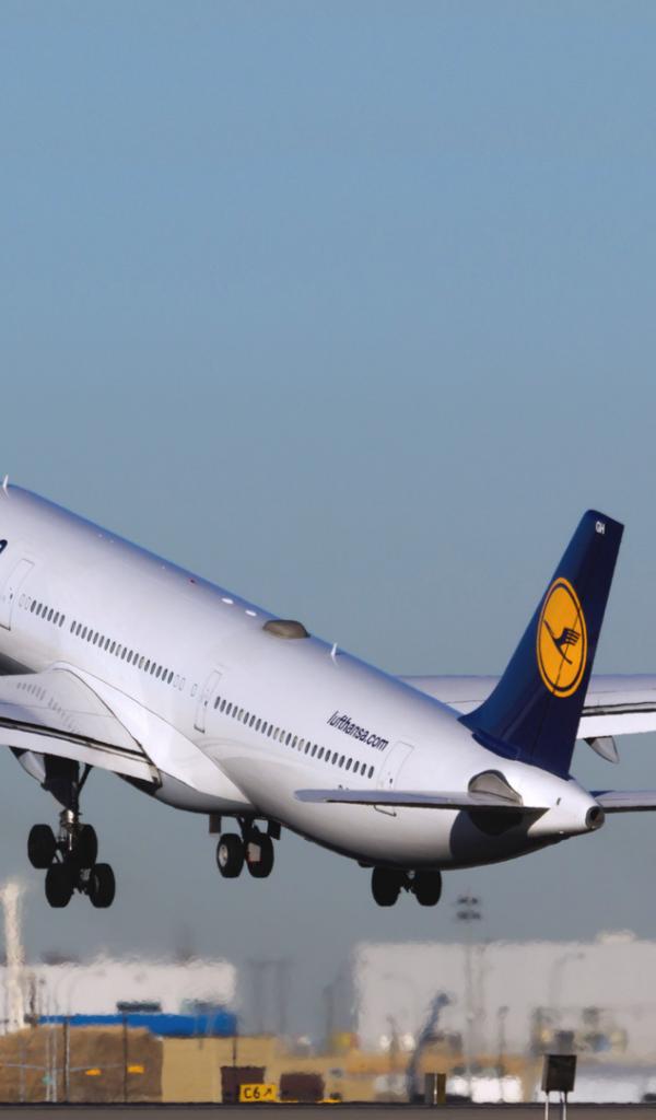 Обои Взлет самолета Airbus A340 авиаперевозчика Lufthansa