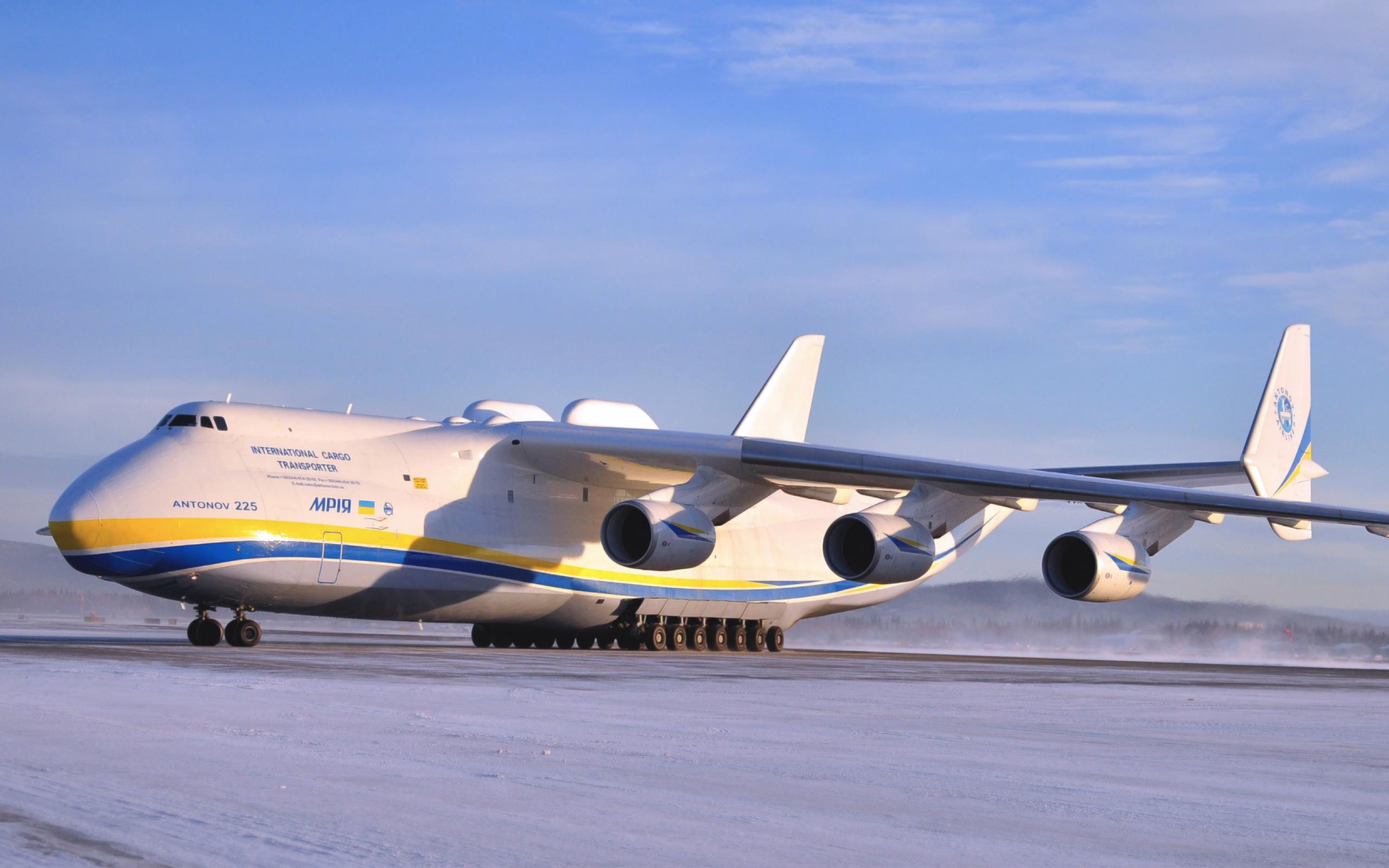 Обои Самый большой самолет Ан-225 Мрия на взлетной полосе зимой