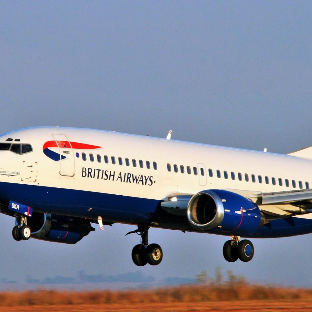 Обои Самолет Boeing 777 авиакомпании British Airways готовится убрать шасси