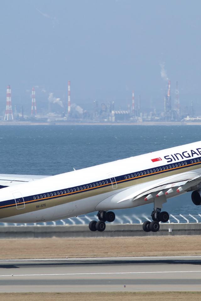 Обои Самолет авиакомпании Singapore Airlines на взлете