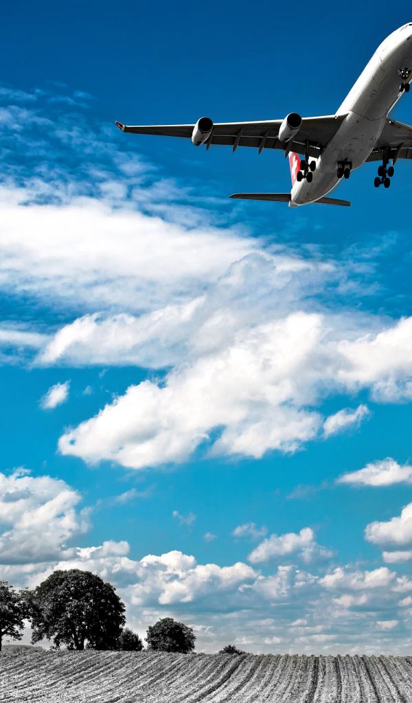 Обои Самолет авиакомпании Swiss Airlines в небе с белыми облаками