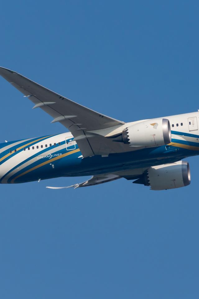 Обои Пассажирский Boeing 787-8 авиакомпании Oman Air в голубом небе