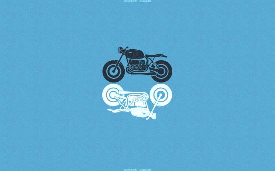 Обои Черный и белый мотоциклы, голубой фон