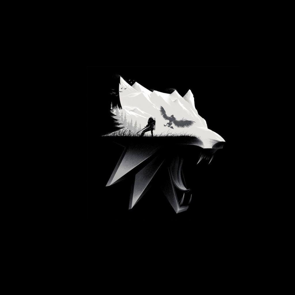 Обои Белая голова волка на черном фоне
