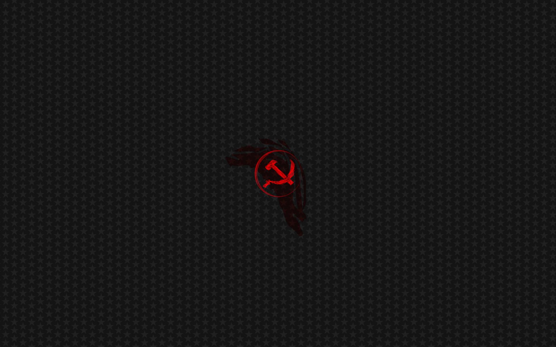 Обои Красный серп и молот на сером фоне со звездами