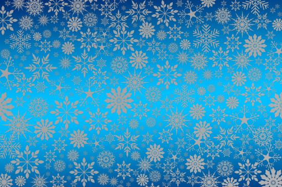 Обои Голубой фон с разными белыми снежинками