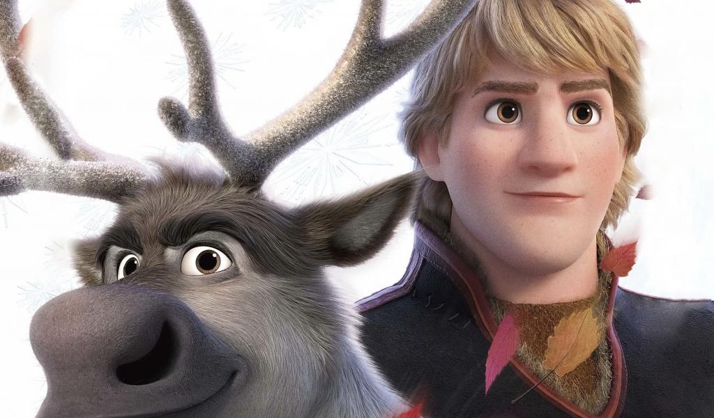 » Обои Персонажи Кристоф и Свен на белом фоне мультфильм Холодное сердце 2