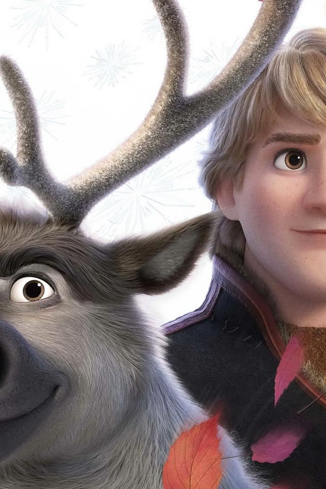 Обои Персонажи Кристоф и Свен на белом фоне мультфильм Холодное сердце 2