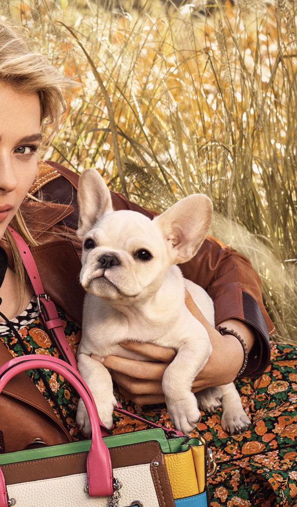 Обои Красивая молодая актриса Хлоя Грейс Морец с собакой