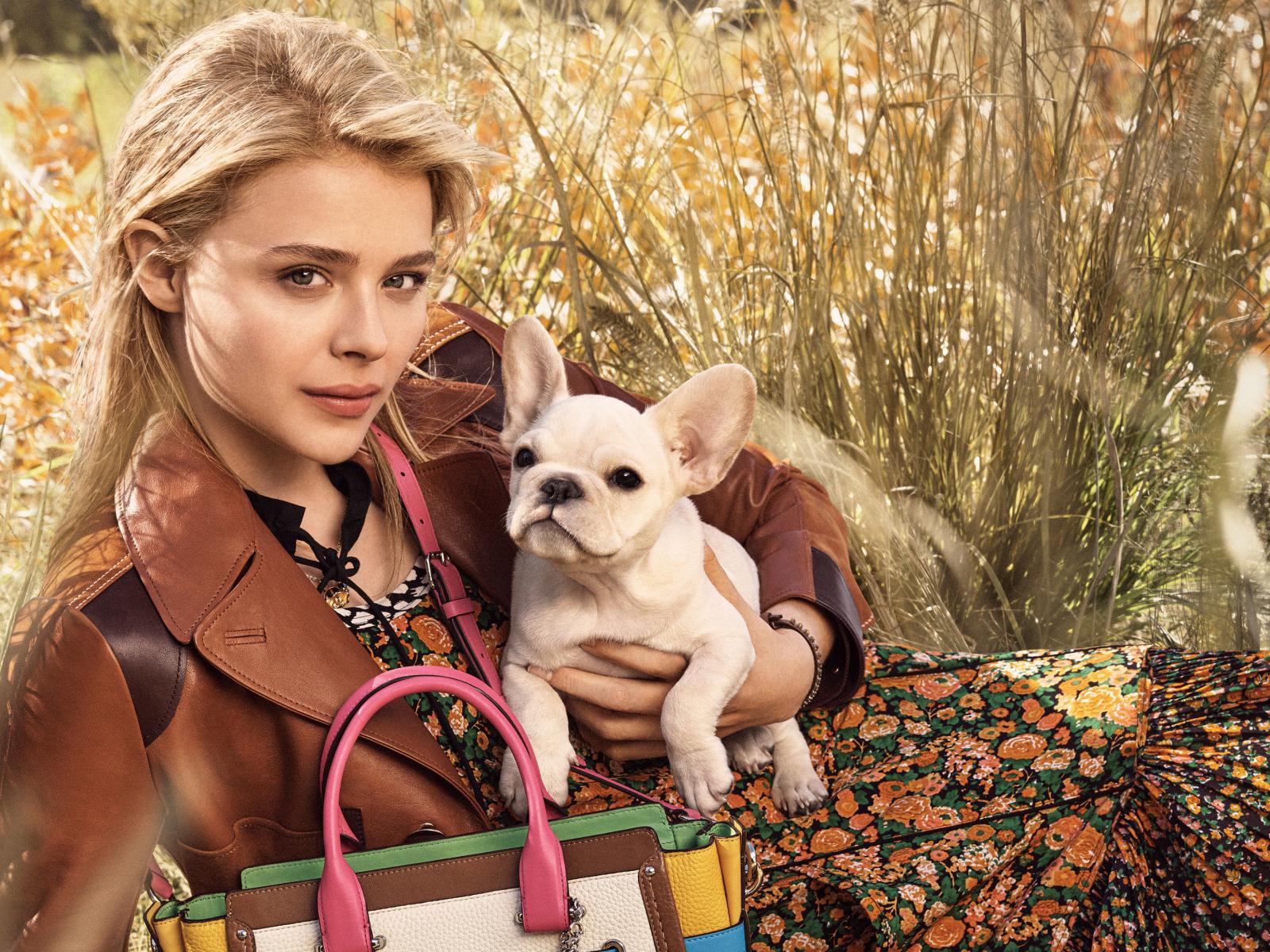 Обои Красивая молодая актриса Хлоя Грейс Морец с собакой