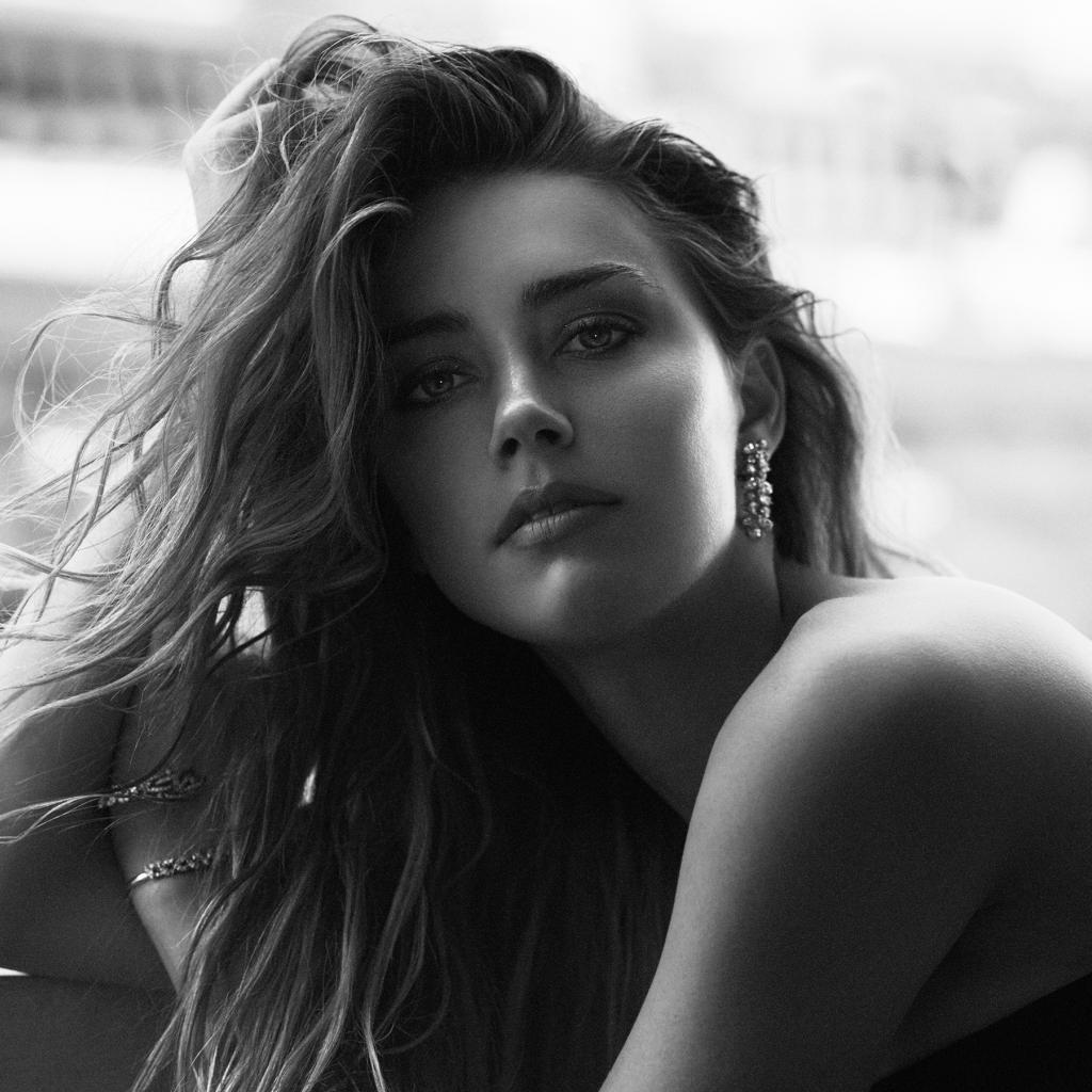 Обои Красивая актриса Эмбер Хёрд, черно белое фото
