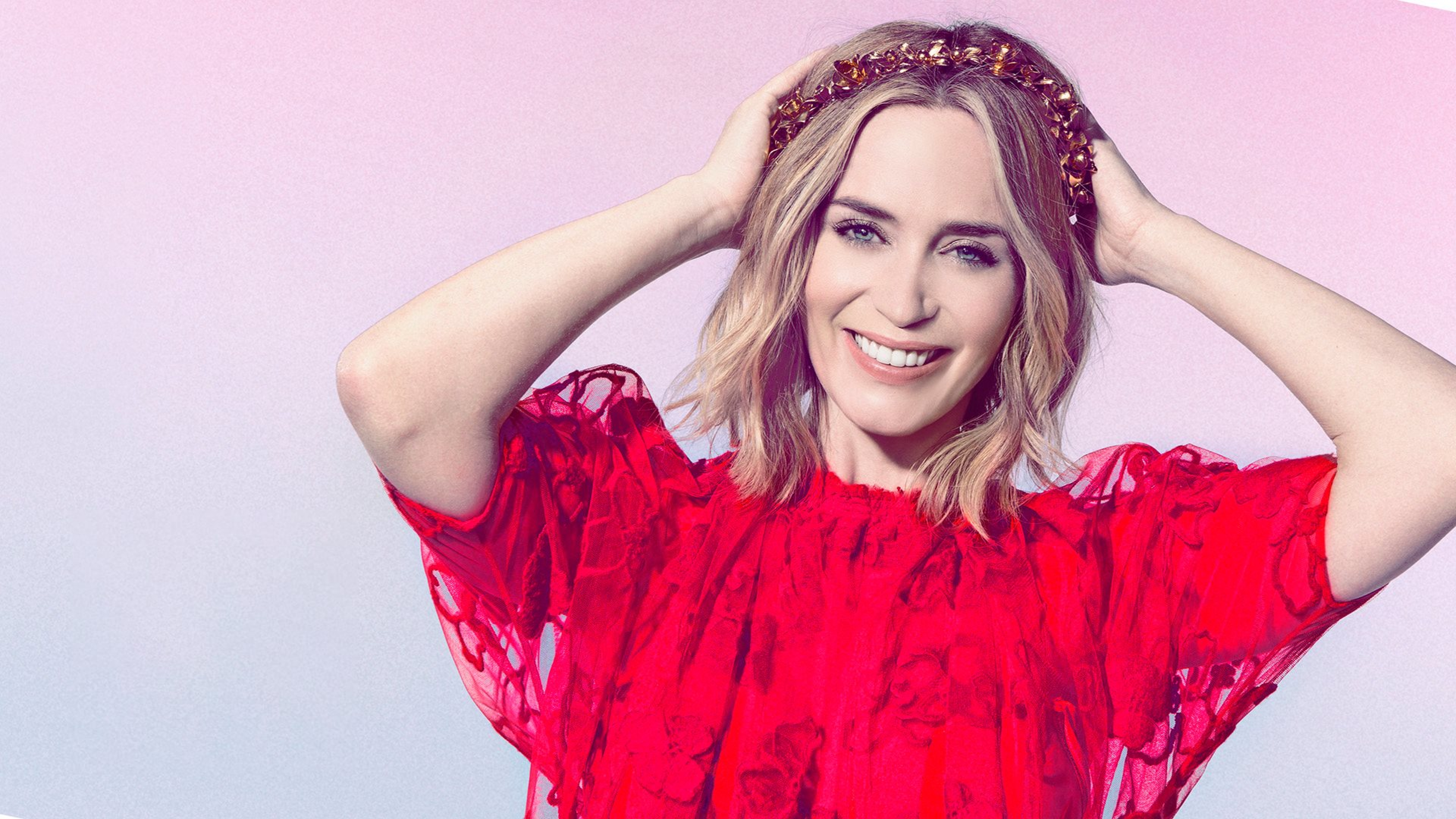 Обои Голубоглазая актриса Эмили Блант в красном платье
