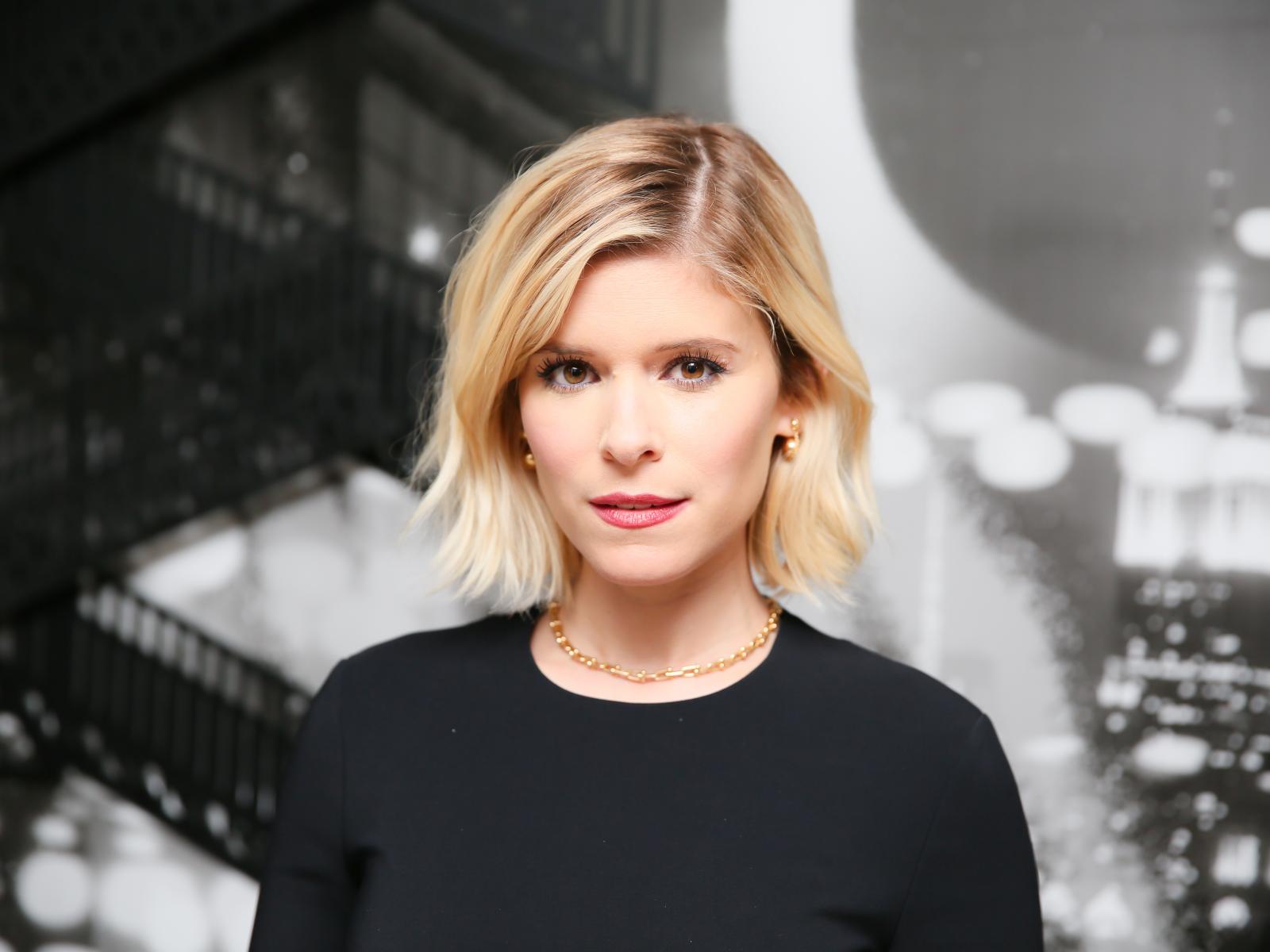 Обои Молодая красивая актриса Кейт Мара в черном платье