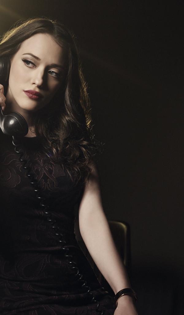 » Обои Актриса Кэт Деннингс в черном платье с телефоном в руках