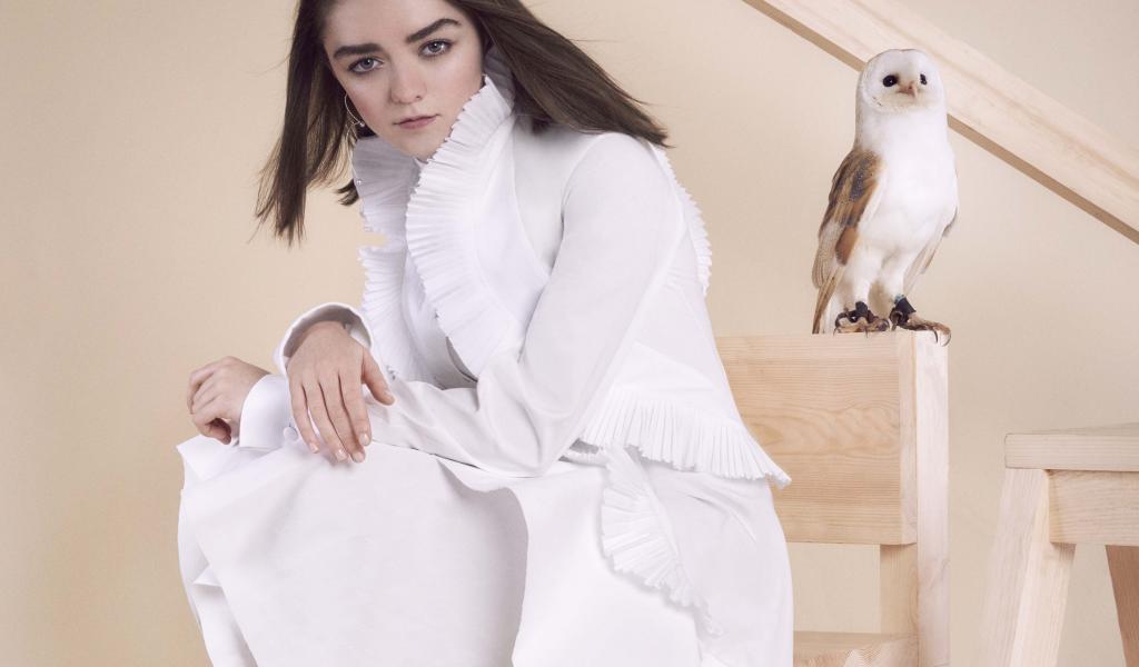 » Обои Актриса Мэйси Уильямс в белом платье с совой