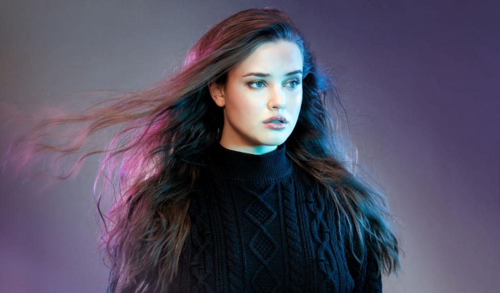 Обои Красивая молодая актриса Кэтрин Лэнгфорд в черном свитере