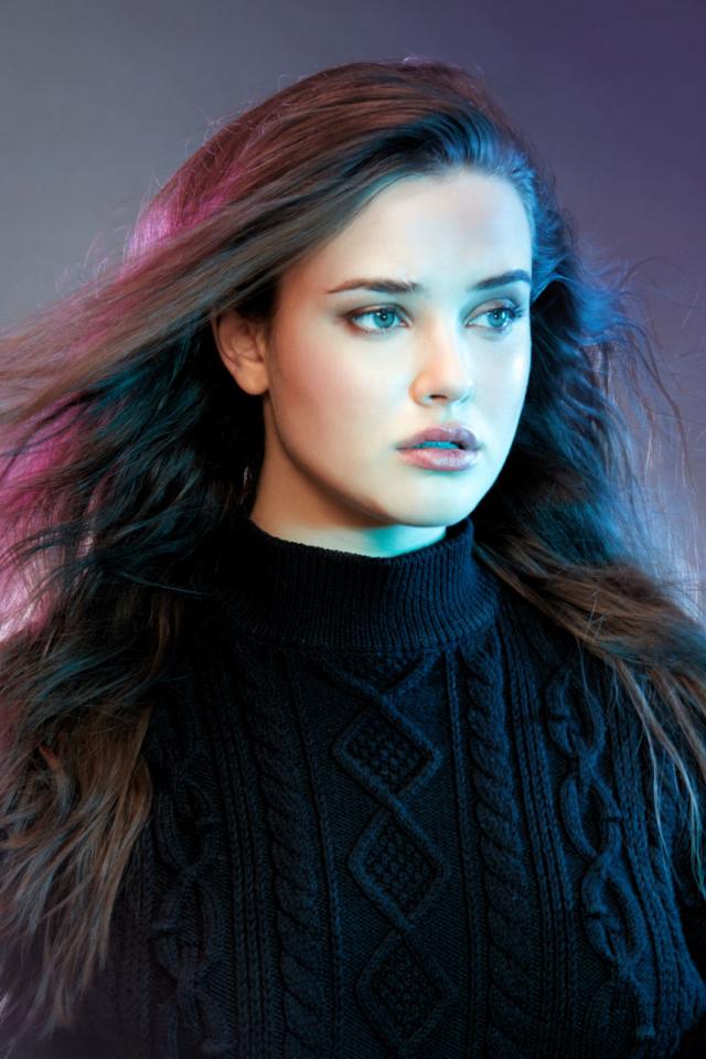 Обои Красивая молодая актриса Кэтрин Лэнгфорд в черном свитере