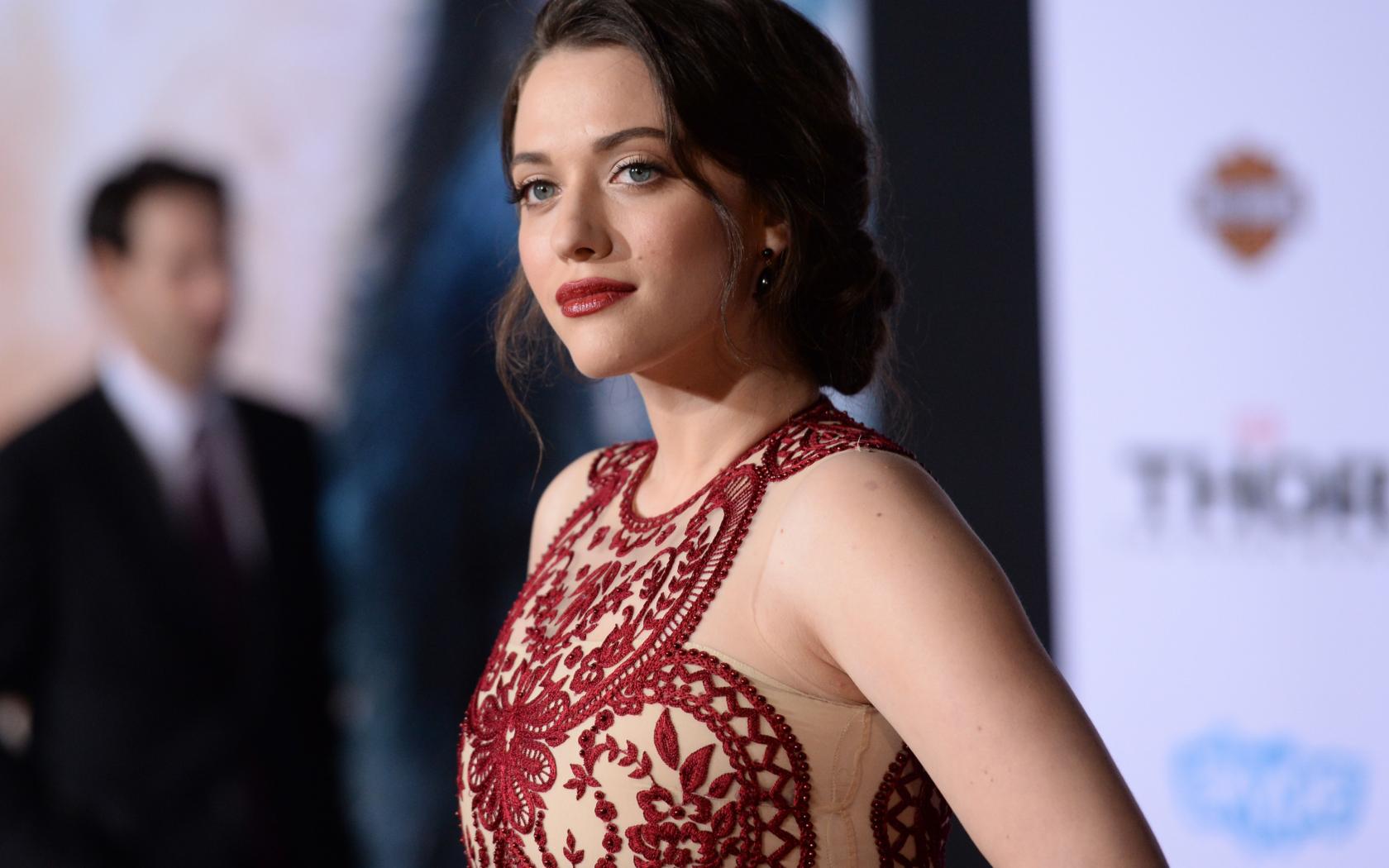 Обои Эффектная актриса Кэт Деннингс в красивом платье