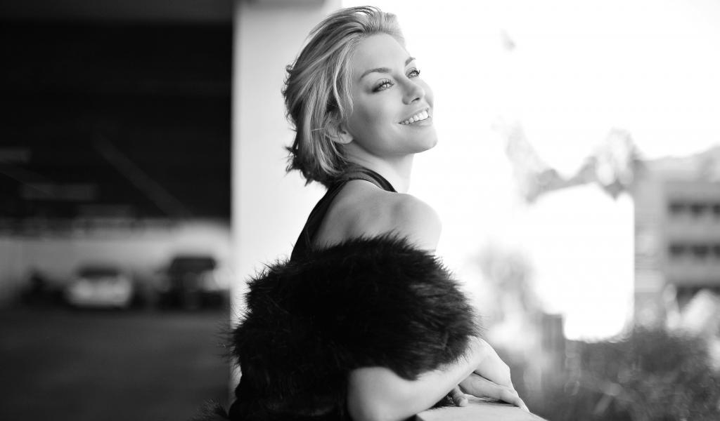 Обои Красивая улыбающаяся актриса Дженнифер Холлэнд черно-белое фото