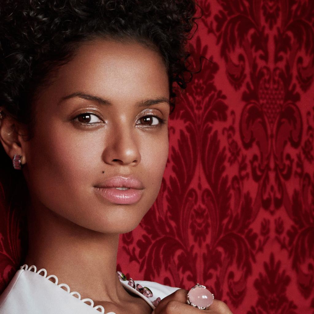 Обои Британская актриса Гугу Мбата-Роу на красном фоне