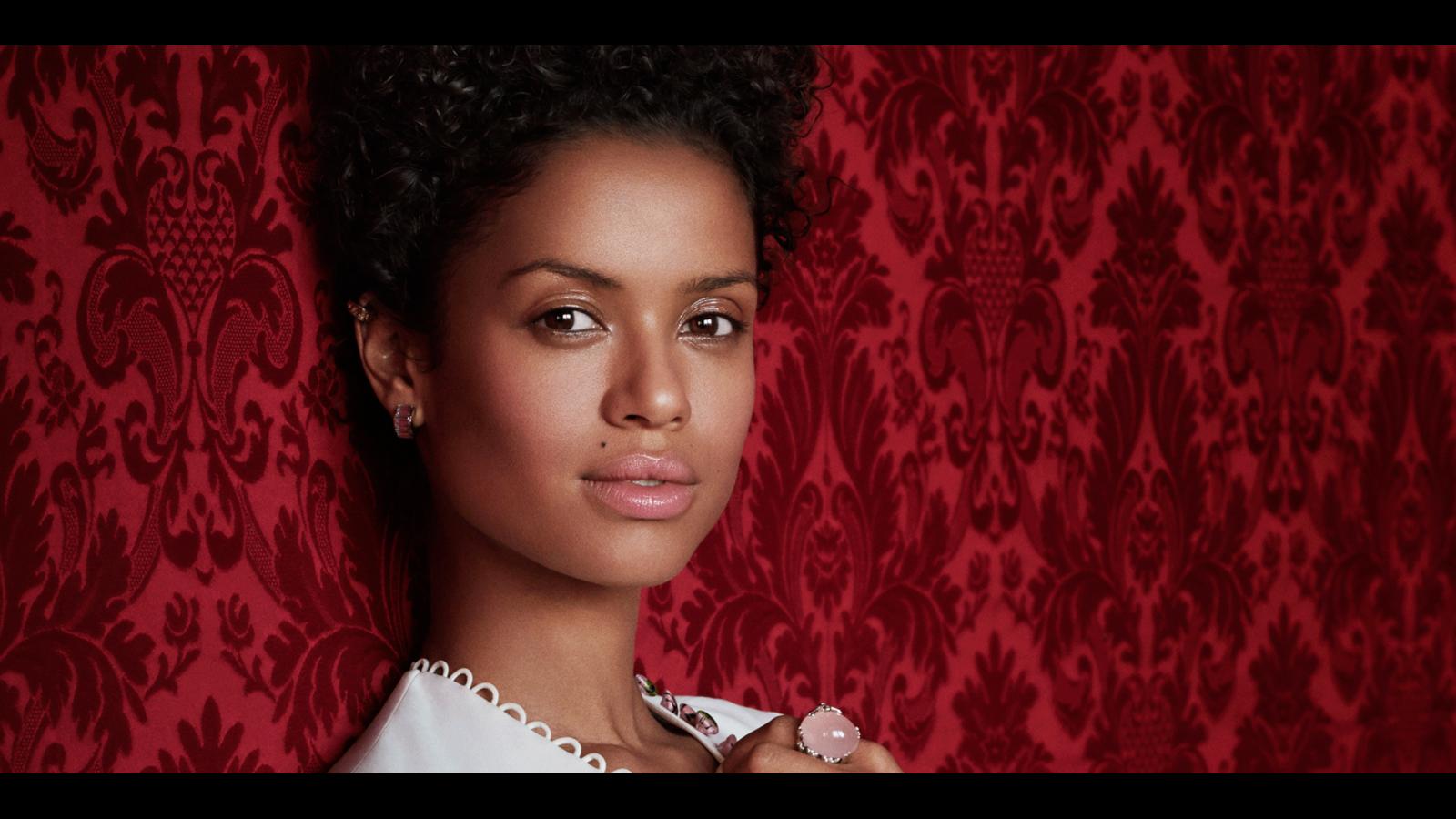 Обои Британская актриса Гугу Мбата-Роу на красном фоне