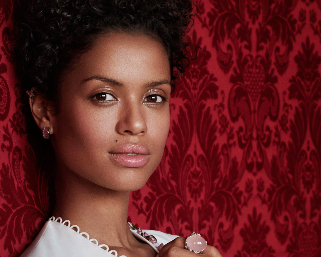Обои Британская актриса Гугу Мбата-Роу на красном фоне