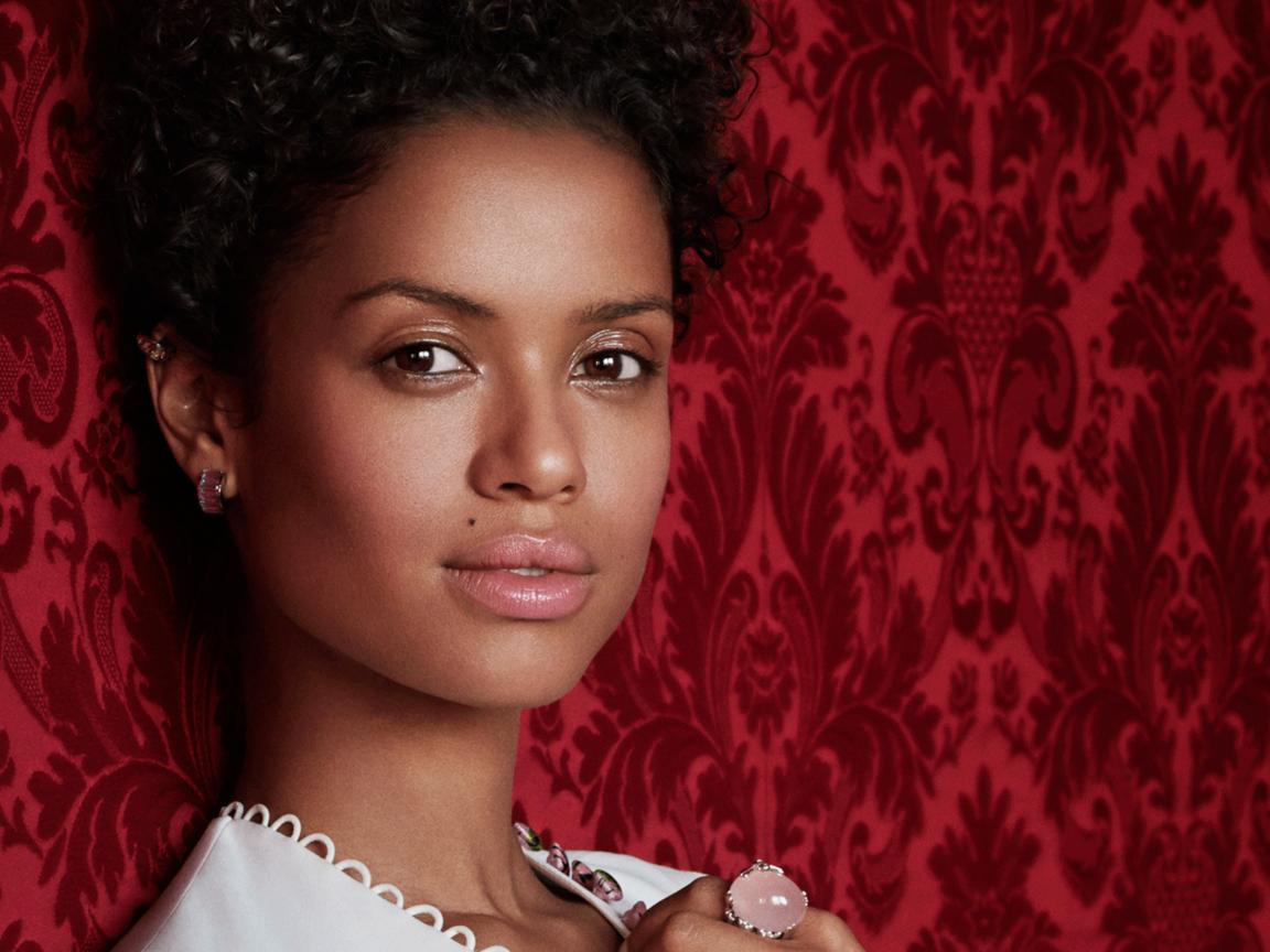 Обои Британская актриса Гугу Мбата-Роу на красном фоне