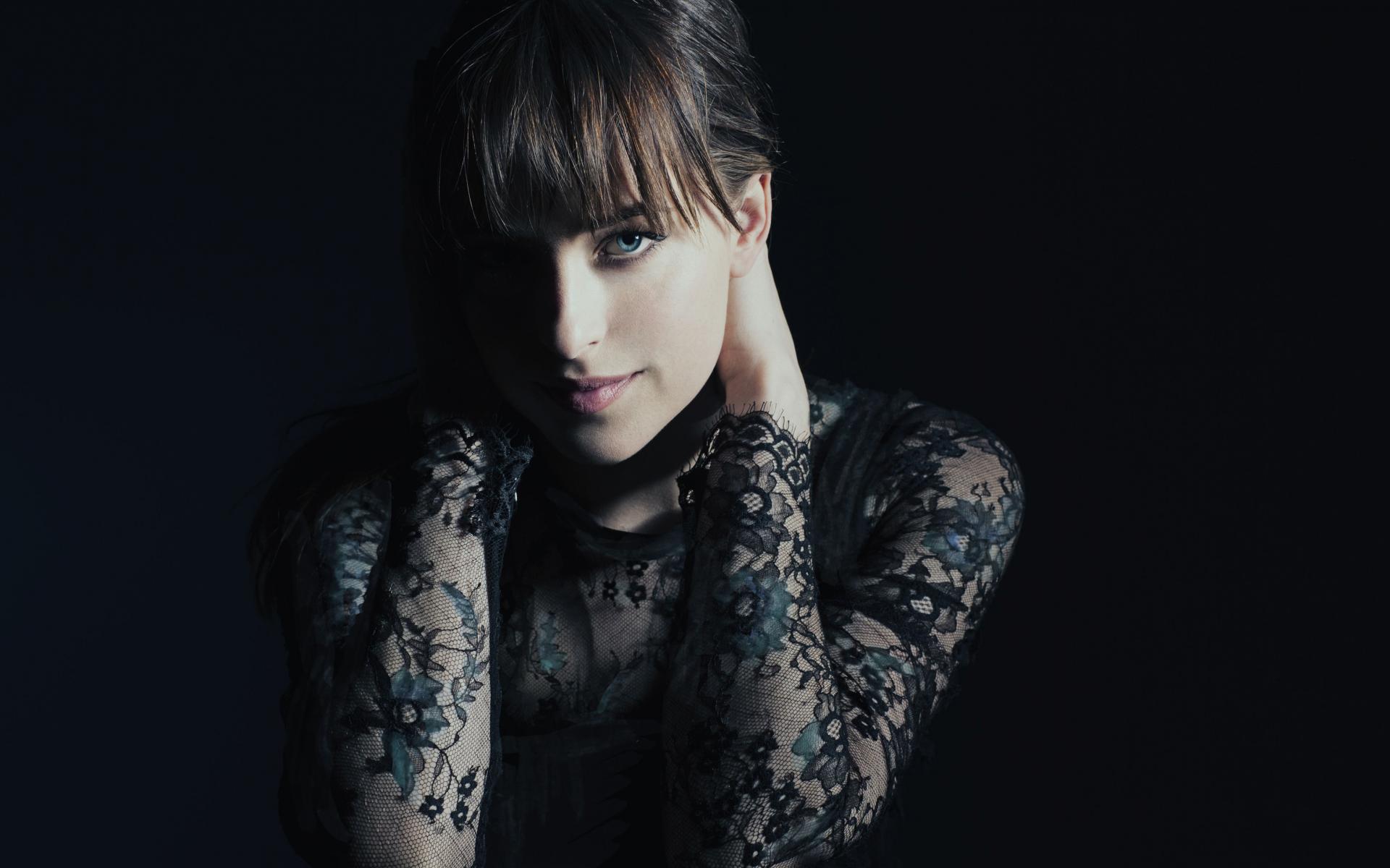 Обои Красивая молодая девушка актриса Дакота Джонсон в черном наряде