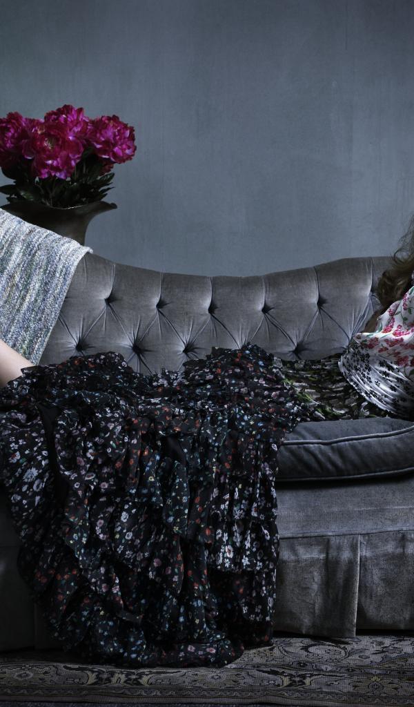 Обои Актриса Натали Портман лежит в красных туфлях на диване