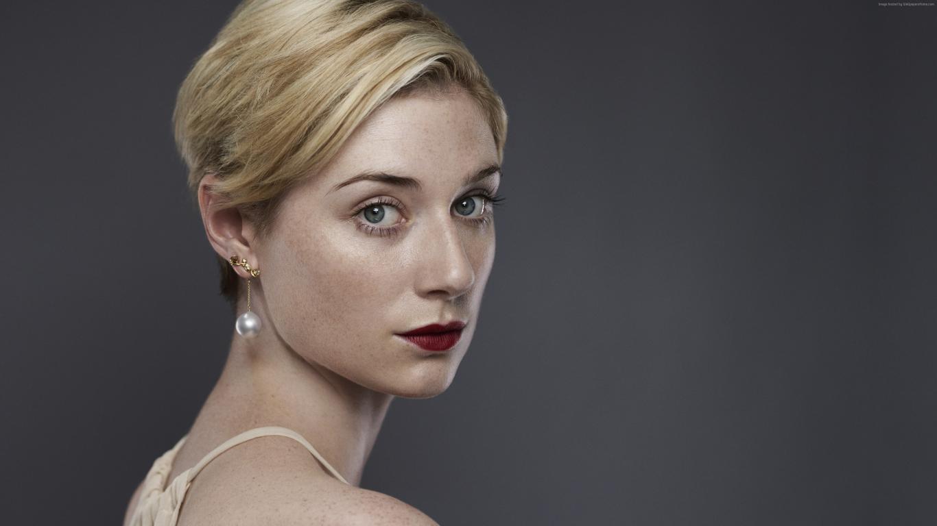 Обои Красивая блондинка актриса Элизабет Дебики, фото на белом фоне