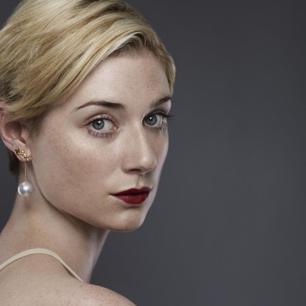Обои Красивая блондинка актриса Элизабет Дебики, фото на белом фоне